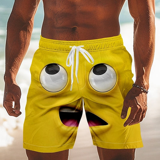 Men's 3D Cartoon Smile Face Big Eyes Swim Trunks Swim Shorts Board Shorts Mid Waist Funny Outdoor Vacation Dailywear Side Pockets Mesh Lining Elastic Drawstring Waist Designer Clothing Apparel